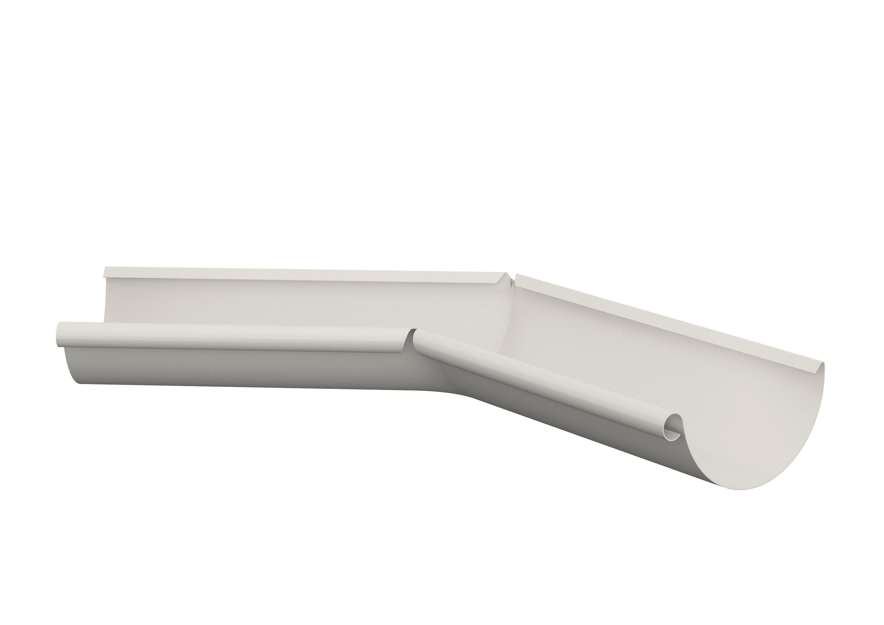Innvendig rennevinkel for halvrund takrenne i 135 grader. Dette produktet er produsert av forbelagt galvanisert stål i tykkelse 0,6 mm.