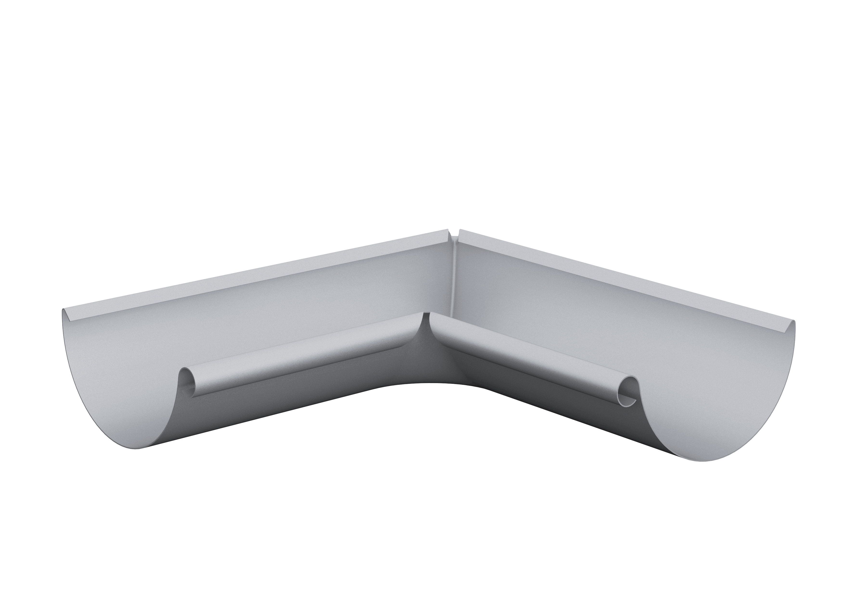 Innvendig rennevinkel for halvrund takrenne i 90 grader. Dette produktet er produsert av forbelagt galvanisert stål i tykkelse 0,6 mm.