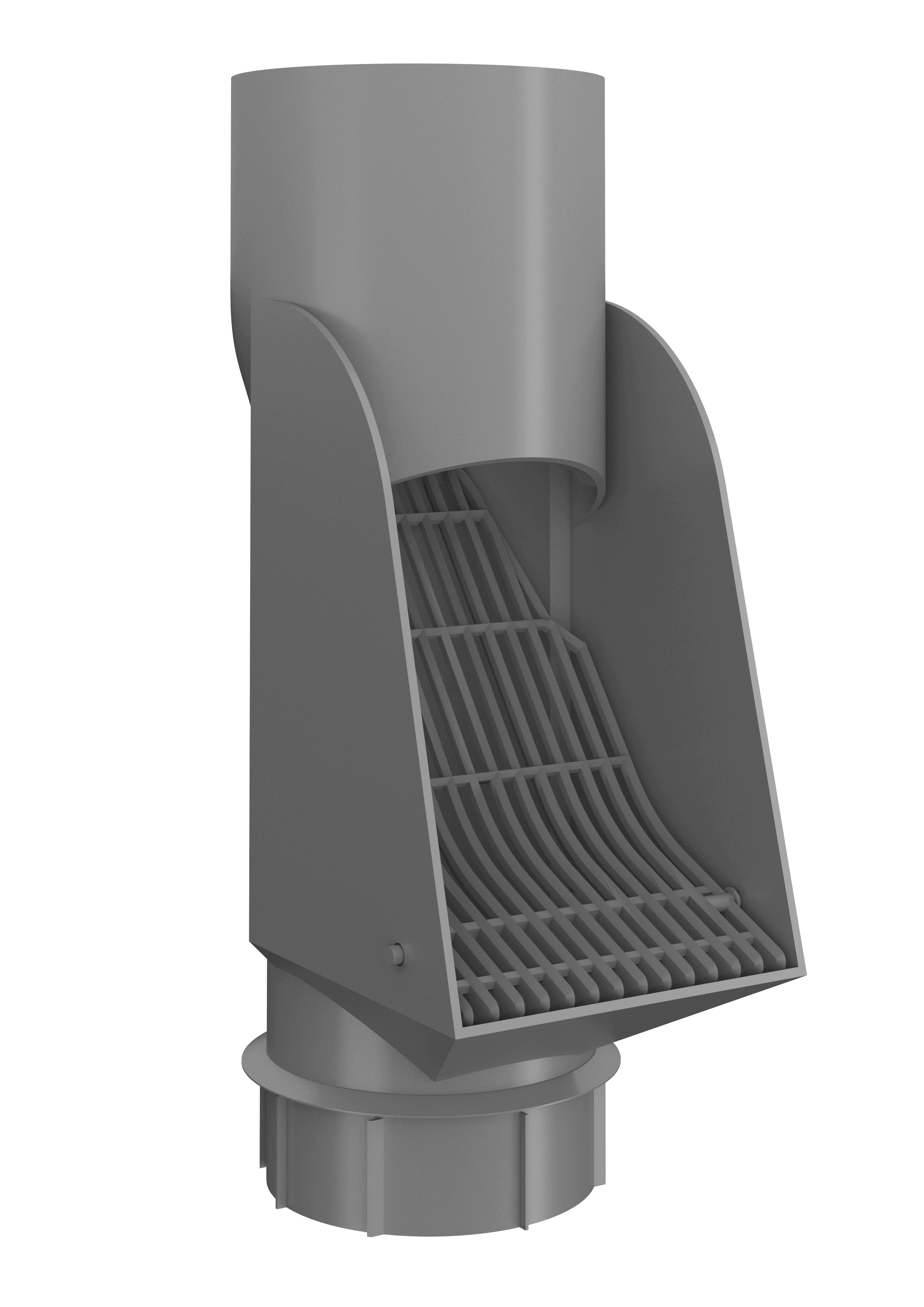 Selvrensende løvsil i HD-Etenplast. Den nedre delen passer til standard markrør (110 mm). Benyttes ofte sammen med en brønnkrave (BUTK) for penere montasje.