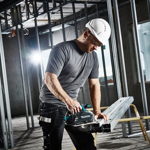 Kraftig 18V sirkelsag til kapping i metall, med meget god løsning for oppsamling av metallspon.