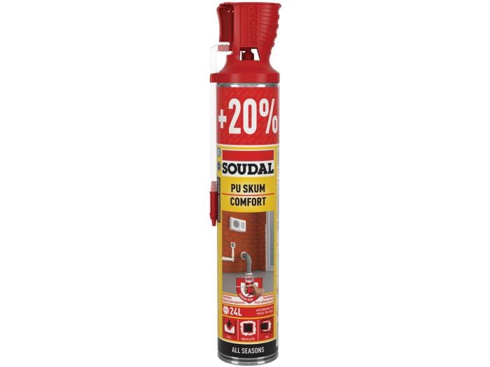 Soudafoam Comfort All Season er et 1-komponent, selvekspanderende, klart til bruk polyuretan skum, med patentert påføringsadapter som gjør flasken gjenbrukbar inntil 6 uker etter 1. gangs bruk. Produktet har blitt utviklet for påføring ved temperaturer helt ned til -10°C